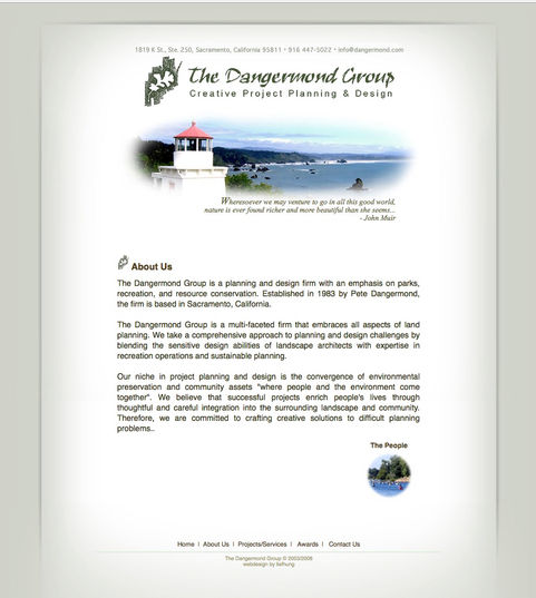 Website design, development and maintenance for The Dangermond Group, a planning and design firm with an emphasis on parks, recreation, and resource conservation. Based in Sacramento, California. A few screenshots can be viewed below. 2003-2010.